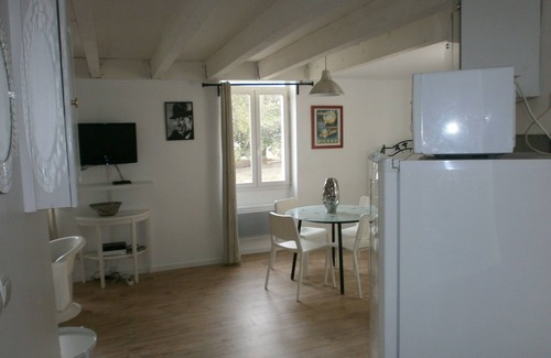 The T3 apartment of 55m2 completely renovated is located in a small house of 2 floors, large living room with flat screen TV, two attic rooms upstairs with bath, washing machine, US kitchen, dishwasher, bed sheets are provided, end of stay cleaning is included.