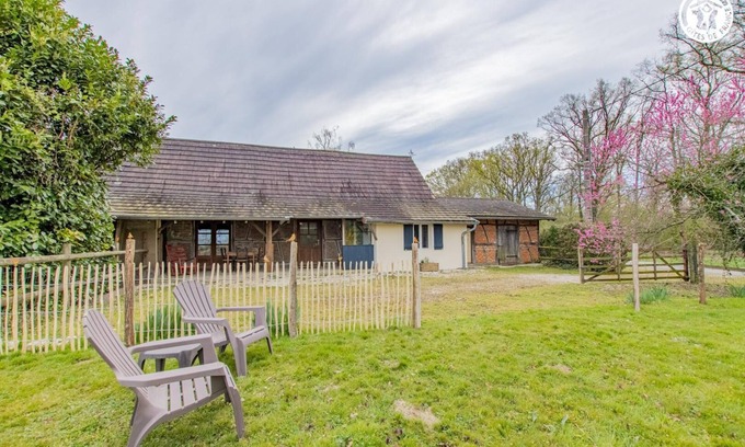 Passionate about nature in all its forms, Corinne opens the doors to an authentic, carefully restored traditional 19th century farmhouse, nestled in a quiet, secluded spot on the edge of a small wood bordering bucolic pastures (where her peaceful donkeys & horses graze), on a vast 3 ha property designed & thought out in a natural & ecological approach to respecting biodiversity (approved LPO refuge & "BZZZ Zone" for the preservation of bees), housing "on the owner's side" free-range hens & roosters in the spirit of a "micro farm" (the promise of possible fresh eggs during your stay!) as well as a large vegetable garden cultivated in "permaculture" (visitable in her presence). Absolute tranquility, nestled in the hollow of a small rural residential hamlet, literal haven of tranquility 100% relaxing. Opportunity to observe wildlife on site (deer, foxes, hares, squirrels, birds, etc.). In the heart of the unspoiled Bresse countryside, a gentle wooded plain dotted with protected areas in ZNIEFF and "Natura 2000 Zone" (for its rich fauna and flora), combining ponds, rivers, and beautiful wild forests, close to the foothills of the Jura mountains. Spacious, very comfortable cottage. Warm, country character. Lots of charm and character. An enveloping, cozy, and comfortable atmosphere, combined with the exotic soul of an old rural residence, which still features a typical brick and timber-framed wall. Large, intimate, sheltered terrace opening onto a pleasant 200m² enclosed garden, largely lawned. Composition: Detached house adjoining the owner's home (total independence, not overlooked). Wi-Fi (fiber). Heat pump heating. Air conditioning. Ground floor: living room-kitchen-lounge, 2 adjoining bedrooms (double bed 160x200cm / 2 single beds 90x190cm which can be joined to form a double bed 180x190cm), bathroom (shower/WC). Covered terrace + enclosed garden (200m²) + bicycle storage + private parking. Mini-market 2.5 km. Small shops & supermarket 9 km.