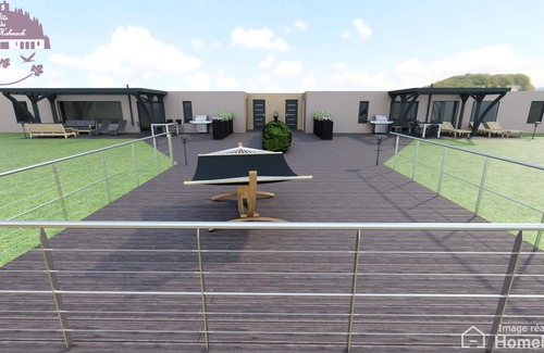 A large living space of 40 m2 including a living room, a fireplace and an equipped kitchen, allows you to enjoy the bright atmosphere offered by large windows.
