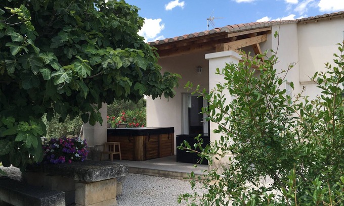 Between Camargue and Alpilles, 10 minutes from the city center of Arles, a 60m² haven of peace in a quiet, friendly residential area in the countryside. The cottage with its private terrace with spa is surrounded by an authentic garden surrounded by fig and olive trees.