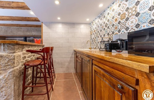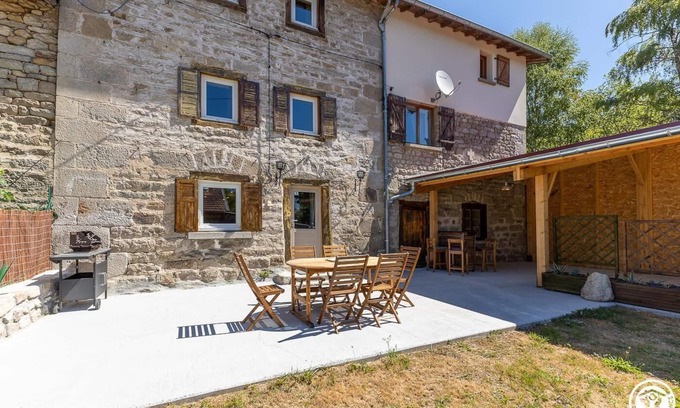 In a peaceful hamlet in the Livradois-Forez Regional Nature Park, this charming cottage welcomes you for a rejuvenating stay, featuring exposed stone, natural wood, and tasteful decor. On the ground floor, you'll be charmed by the bright living room, featuring a fully equipped kitchen, dining area, and wood-burning stove nestled in an imposing stone fireplace. The kitchen, both rustic and modern, features a superb wall of colorful tiles found throughout the cottage. On the second floor, a warm, all-wood living room invites you to relax, with its old bed converted into a sofa, armchairs, and a ceiling covered with a decorative hanging that adds to the cozy charm of the place. The atmosphere is ideal for reading, playing games, or simply relaxing. Outside, make the most of the sunny days in the enclosed garden, ideal for children, or on the furnished terrace with garden furniture and a covered dining area, if needed, thanks to the bar. A true haven, perfect for a getaway as a couple, with family, or with friends, in the heart of the Auvergne countryside. Hiking, local crafts, and wide open spaces await you just minutes away! The cottage comprises on the ground floor: - a living room with a kitchen open to the dining room (with a wood-burning stove) - a laundry room/toilet with a washbasin (septic tank) On the first floor: - a bedroom with a double bed - a bedroom with a double bed - a shower room/toilet On the second floor: - a TV lounge area - a bedroom with a double bed Bicycle and motorcycle storage available