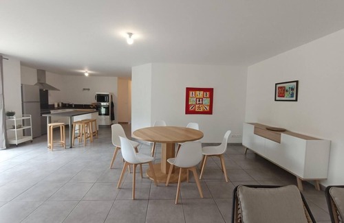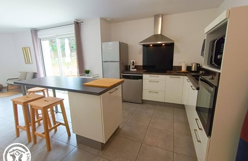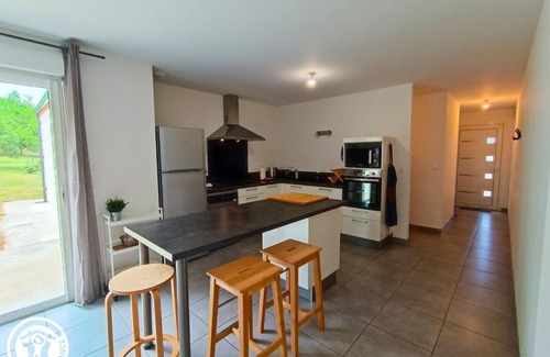 This new house named "gîte du Roc" of 120m2 is located near Cahors (6 kms). The interior is pleasantly arranged with its spacious and bright living space of 59 m², its decoration is refined and resolutely modern. You will also enjoy its outdoor spaces in the beautiful season! Ideal location for visiting the remarkable sites of the Lot such as St Cirq Lapopie and Rocamadour. Go for a walk and refresh yourself at the lake of Catus or at the nautical base of Antinéa in Douelle (swimming, fishing, catering, games, petanque ground...) Without forgetting the magnificent canoeing trips on the Lot and the Célé valley which are waiting for you! Ideal starting point for hiking or mountain biking for a connection to nature. Many castles will be to discover in the surroundings: Castle of Les Bouysses, Caillac, Lagrezette, Le Roussillon and the Castle of Mercues with its gastronomic restaurant! All that's left for you to do is to discover our magnificent department!House on one level of 120 m²: entrance hall, laundry room with washing machine, clothes line and cleaning kit, living space of 59 m² with its fully equipped and integrated kitchen, dining room and living room with sofa, armchairs, television giving access to a terrace of 25m² with garden furniture, parasol and chiliennes, 3 bedrooms (2 beds in 140 and 1 bunk bed in 90), bathroom with shower, bathtub and double washbasin, independant wc Heating on the ground. Fenced area of 400m². Private garage for one car and bikes of 25m². Private parking.