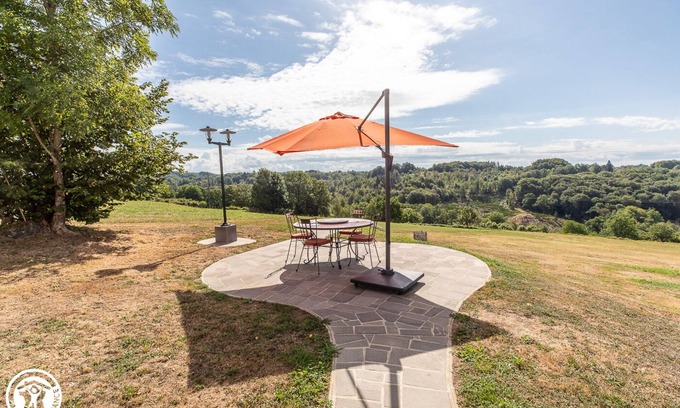 Do you want to spend holidays in nature? This guest house is for you. It is located in a small quiet hamlet in Cros, a village near the Corrèze and Cantal. You will enjoy many hikes to do from the house or nearby. The large open unfenced land will delight young and old, barbecue, ball parties with family or friends. A petanque ground has also been arranged to satisfy you. And if the weather is not nice enough, there will be the large games room with its lounge and especially a table tennis table. Detached house with: a large living room: kitchen (very well equipped), living room and dining room with wood stove (free wood), a bedroom with 1 bed 160, two bedrooms each with 2 beds 90, a large bathroom bath with tub and shower, separate wc. For more comfort the beds are made on arrival and the bathroom linen is included in the price. Electric heating according to consumption.