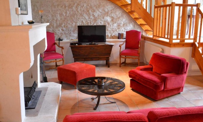 Gîte familial avec piscine chauffée, jardin privé et équipements bébé en pleine propriété viticole. - FR-1-653-18 offers accommodations in Saint-Cybardeaux, 16 miles from Cognac Golf Course and 17 miles from Hirondelle Golf Course. This property offers access to a terrace, table tennis, free private parking, and free Wifi. Outdoor seating is also available at the vacation home. Gîte familial avec piscine chauffée, jardin privé et équipements bébé en pleine propriété viticole. - FR-1-653-18 features 2 bedrooms, a fully equipped kitchen with a dishwasher and a microwave, a washing machine, and 1 bathroom. A TV is provided. The accommodation has a fireplace. Guests can also relax in the garden. Poitiers-Biard Airport is 72 miles away.