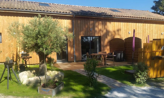 Welcome to La Grange aux Arbres, a peaceful haven nestled in the heart of Entre-deux-Mers, just 20 minutes from Bordeaux. Our 3-star rated gîte, located in a renovated wooden barn using eco-friendly materials, welcomes you to a preserved natural environment, surrounded by vineyards, forests, and absolute tranquility.