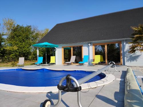Providing a garden, Gîte Ker Koad provides accommodations in Pluduno. With pool views, this accommodation offers a terrace and a swimming pool. Dinan Train Station is 12 miles from the vacation home and Port Breton Park is 14 miles away. This vacation home includes 3 bedrooms, a living room and a flat-screen TV, an equipped kitchen with a dining area, and 1 bathroom with a shower and a washing machine. Offering free private parking, this 1-star vacation home also features free Wifi. The property has an outdoor dining area. Guests can make the most of the warm weather with the property's barbecue facilities. Marina is 14 miles from the vacation home, while Casino of Dinard is 15 miles away. Rennes–Saint-Jacques Airport is 49 miles from the property.