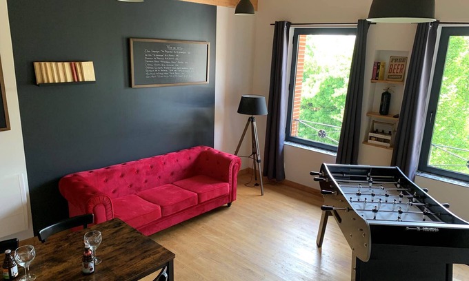 As soon as you arrive, you will be seduced by the warm and friendly atmosphere of La Cordonnerie. The interior of the cottage is carefully arranged, skilfully mixing traditional and contemporary elements to create a chic bistro atmosphere with his foosball. The wooden beams and the bistro decoration touches bring a touch of authenticity.