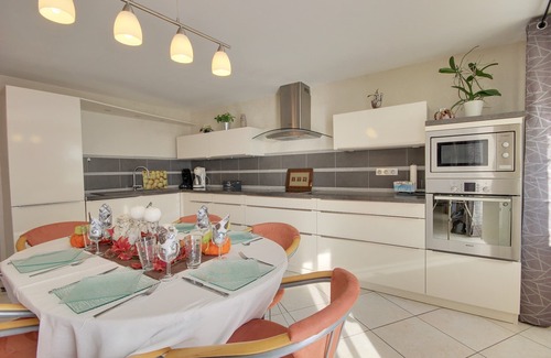 A fully equipped kitchen, dishwasher, microwave, oven, fridge / freezer, coffee pod machine and filter, toaster, kettle, induction hob, juicer, pressure cooker, robot, electric mixer, food scale etc ...