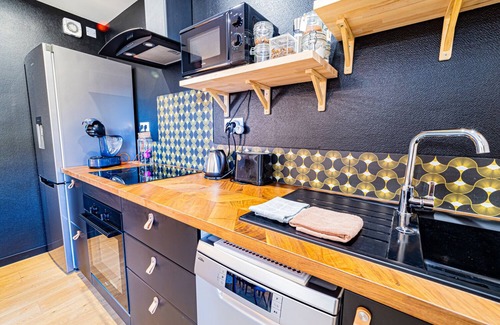 A dining area, a sofa bed, and concierge services are featured at this 2-bedroom rental. Bathroom amenities include a hair dryer, towels, and toilet paper. Prepare a home-cooked meal in the kitchen, complete with an oven, a stovetop, and a refrigerator, as well as a coffee maker, an electric kettle, and an ice maker. And you won't have to pack extra clothes, because you'll also have access to laundry facilities.