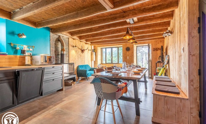 ALL INCLUSIVE! Come and enjoy this warm chalet-style cottage located in the middle of an isolated tourist village. On the Cézallier plateau in the heart of Auvergne, you will appreciate the many hikes that will be available to you, in particular the one in the village which leads to a chapel and lets you discover the view of the Sancy. Disconnection guaranteed! To discover: the village of Besse and the ski resort of Super-Besse, the Auvergne animal park in Ardes, the castle of Murol, the town of Issoire, the village of Montpeyroux classified among the most beautiful villages in France, Mont-Dore, the thermal baths of La Bourboule... This house has been completely renovated in a chalet style on 3 levels. On the ground floor is the living room and its fireplace, the dining room and the open kitchen (with a pretty cellar under the stairs). On the first floor, two bedrooms are available to you (one with a 160 bed and one with a 140 bed) as well as a shower room/WC. Then, on the top floor is a bedroom under the roof with 2 bunk beds (4x90) (the top bunks are prohibited for children under 6 years old) as well as the adjoining shower room with WC. Outside, you will enjoy the quiet terrace. Private parking is at your disposal as well as a bowling green for summer evenings with family or friends. For your comfort, heating, sheets, cleaning and towels are included. Shops and services in Besse-et-Saint-Anastaise 20km away or in Ardes-sur-Couze 18 km away.