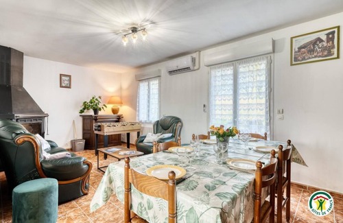 Single storey cottage: -Living room and open fitted kitchen (oven, induction hob, kettle, toaster, Senseo coffee maker + filter, fridge) with fireplace and table football, -Bedroom for 2 people (160X200cm bed), -Bedroom for 2 people (140X190cm bed), -Bedroom for 2 people (140X190cm bed), -Bathroom with corner shower, sink and hairdryer, -Separate toilet, -Garage with washing machine, baby equipment and outdoor games. Cannot accommodate a car. Exterior: -Large tarmac parking, -Terrace at the back of the house, -Portico. Welcome to Gîte Le Paradis, located in Sommery, in a green setting typical of the Pays de Bray. This all-inclusive gîte, which can accommodate up to 6 people, is ideal for a stay with family or friends. Enjoy a peaceful setting to recharge your batteries, with an enclosed garden and a warm interior, combining modern comfort and Norman charm. Nearby, explore the Normandy countryside through numerous hiking trails. Explore Rouen, the city of a hundred bell towers, Forges-les-Eaux with its casino, or the splendid abbey of Saint-Wandrille. Don't miss the Route des Fruits along the Seine, the Eawy forest or the famous cliffs of Étretat, less than an hour's drive away. Gîte Le Paradis is the perfect address for a peaceful break, where nature and discoveries combine for an unforgettable stay.