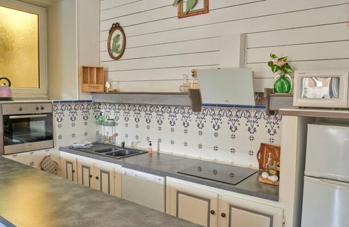 The Presbytery of 1460, renovated with respect to its history and modern comfort, air-conditioned and fully equipped, offers two spacious bedrooms (sleeps 5), two bathrooms, an open kitchen on a living room of m² and a private terrace with barbecue and sunbathing. A parking space is reserved in front of the door. This house is not suitable for people with reduced mobility, and consists of 2 levels.