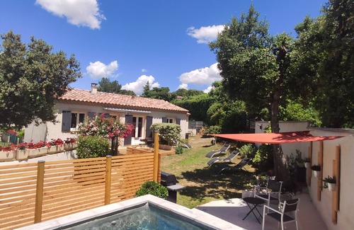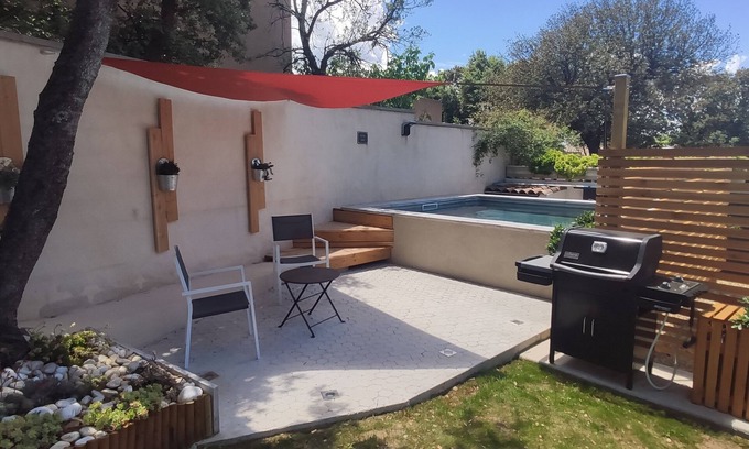 - Proche Uzès petit gîte avec grande cuisine d'été et piscine