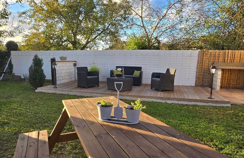 The Cocoonr/Book&Pay agency offers this charming 3-star holiday cottage for rent, located in the peaceful Hauts-de-France region in Chassemy, in the Soissons, Laon, Reims triangle, at the gateway to Champagne and about 1.5 hours from Paris and Disneyland. With a surface area of 70 m², it can accommodate up to 4 guests and offers all the comforts you need for a relaxing stay, including a jacuzzi, sauna and private garden. It consists of a lovely living room, a fully equipped kitchen, a bedroom, a sleeping area on the mezzanine and a bathroom. Everything is ready to welcome you! All you have to do is drop off your bags and enjoy a relaxing stay.
