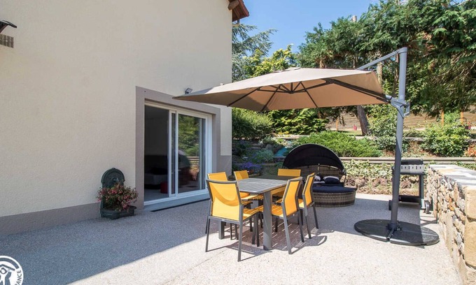 Imagine a beautiful driveway leading to a pretty property with trees, flowers and carefully maintained with a backdrop of a glimpse of Lake Aydat. This is your next vacation spot! This former dwelling house transformed with passion by Hervé and Marie-Odile is perfect for accommodating two gites with undeniable comfort. We reassure you right away, very well designed, each gîte giving on either side of the house, you will not be able to "do without the salt". On the other hand, you will love lounging in the soft garden bed while sipping a cold drink... we can see you there already! The owners will take great care of their guests and will be delighted to share their passion for their region. Lake Aydat located just a few minutes by car is an emblematic place in the department to discover (or rediscover) absolutely! The gîte is located on the ground floor of the house. On one level it is composed as follows: - beautiful entrance - living room / fully equipped kitchen - two spacious bedrooms with a comfortable 160 bed - Bathroom - Separate WC - laundry room Marie-Odile and Hervé are not the type to skimp on the means, comfort and quality are indeed there! Small dogs can be accepted on owner request.