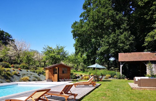 The accommodation is located in the heart of a park of 7 hectares with breathtaking views of the pond on one side and the pool and orchard on the other.
