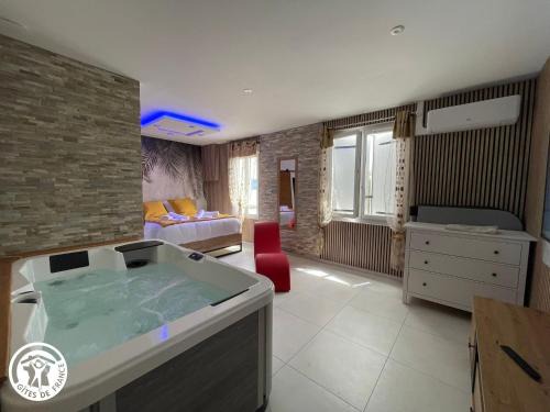 19 miles from Pornic Train Station in Bouin, Gîte romantique avec spa et jardin à 1 km de l'Atlantique, proche Noirmoutier et plages - FR-1-426-554 provides accommodations with access to a hot tub. The air-conditioned accommodation is 12 miles from Casino of Saint Jean de Monts, and guests can benefit from on-site private parking and complimentary Wifi. Outdoor seating is also available at the vacation home. Providing a terrace with garden views, this vacation home also offers a TV, a well-equipped kitchen with a dishwasher, an oven, and a microwave, as well as 1 bathroom with a shower. For added privacy, the accommodation features a private entrance. Guests can also relax in the garden. Pornic Castle is 22 miles from Gîte romantique avec spa et jardin à 1 km de l'Atlantique, proche Noirmoutier et plages - FR-1-426-554, while Noëveillard Harbor is 22 miles away. Nantes Atlantique Airport is 32 miles from the property.