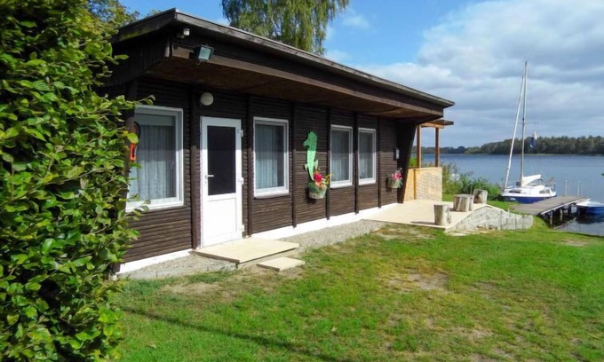 Simple timber house "Güstrower Chaussee". 800 m from the centre of Krakow, on the lake. For shared use: lawn for sunbathing. Private: barbecue. Shop 800 m, restaurant 300 m, bus stop "Krakow am See,Güstrower Chaussee" 300 m, railway station "Güstrow" 20 km. Golf course (18 hole) 10 km. Please note: car recommended. This wooden house overlooking the lake (Krakowersee) provides good opportunities for fishing. It is set back from the main road, on the ground of a sailing club. Private beach and jetty. Rowing boat available free of charge. Motorboat (no license) available on request and charges.