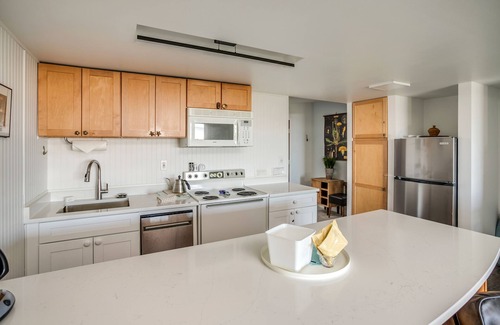 Lounge and relax on the sleeper sofa where you can see the waves crashing and hear the sounds of the ocean. Or, invite your friends over to watch a game on the large TV with ample seating for all. Wonderfully updated unit with new modern furniture, artwork, lighting and new flooring.