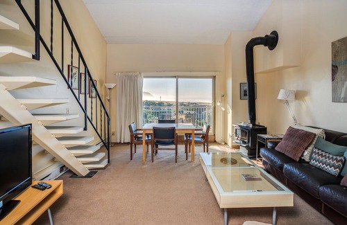 G691 is a one bedroom loft condo located on the 4th floor of Gearhart House. Private deck with an ocean view. Main bedroom has a King bed and also has a TV. Loft area has two twins. There is not a sleeper sofa. Max occupancy is 4. We do suggest that nobody under the age of 5 stay in the unit as there are open stairs to the loft and the loft only has a half wall.