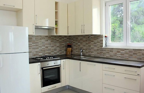 3-family house "Gabriela", 3 storeys. In a quiet, sunny, elevated position, 200 m from the sea, 200 m from the beach. Private: swimming pool angular (9 x 3 m, 29 m2, depth 150 cm, seasonal availability: 01.May. - 01.Oct.) with internal staircase. Outdoor shower, garden furniture, barbecue. In the house: internet access, washing machine. Parking at the house on the premises. Shop 5 km, restaurant 250 m, bus stop 550 m, pebble beach 500 m, rocky beach 200 m. Shop 850 m (15.06.-15.09.).
