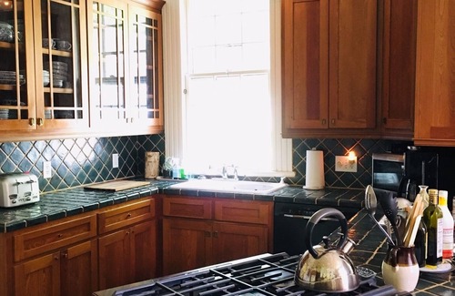 Our home has central heating and air-conditioning which make for an inviting environment year-round. With two spacious bedrooms with (1 king/1 queen size beds) featuring 12-14 foot ceilings and hardwood floors throughout with in-suite bathrooms making you feel right at home, our full use kitchen is equipped with all the appliances you’ll need during your stay to prepare meals with family or friends. Coffee and Tea are included for guests, crisp 5 star hotel bedding and towels, along with iron, ironing board, hair dryer, washer/dryer and WIFI broadband .