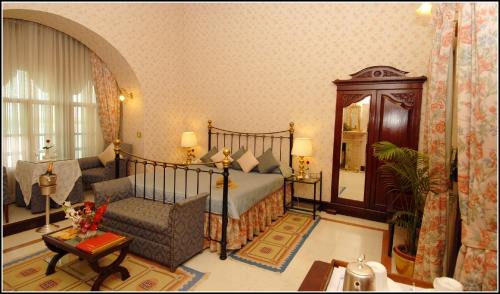Gajner Palace is a lakeside palace-complex adjacent to a sanctuary, in the middle of Thar Desert. It is a heritage property. It features a lush green garden. Free Wi-Fi is available throughout the property. The well-lit air-conditioned rooms of Gajner Palace offer a mini-bar, sofa and satellite TV. Tea/coffee making facilities are available. The private bathrooms include a bathtub, hairdryer and shower. The huge Junagarh Fort is 19 mi from the property. The Gajner Railway Station and Gajner Bus Station are 25 mi away while the Jodhpur Airport is 168 mi. The property operates a 24-hour front desk to assist guests with luggage storage, newspapers and safety deposit. A tour desk is available for making travel arrangements and currency exchange. A variety of Rajasthani, Indian and Continental cuisines are served at The Mirage. Private dining is possible with room service.
