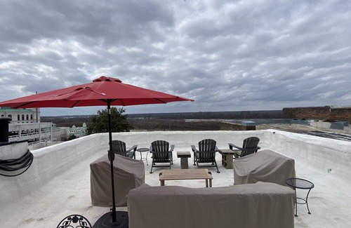 Stunning renovated 1875 contemporary loft in the heart of downtown historic Vicksburg! Now with an elevator for easy access! The loft is a well appointed 'wow factor' space that comfortably sleeps 4, sweeping river views from the rooftop terrace. Walk to unique dining, shopping and historic sights. Located above a celebrated Mississippi art gallery, the space is an artist's dream home. The 2,400 sq. ft. open floor plan features unique art and a blend of contemporary and antique furnishings. The loft has one king bed and one queen bed with two couches and a glider (for those of you who are not southern, that is a daybed that swings!) one full bathroom with a large shower, a laundry room, full kitchen, and a rooftop terrace for watching the incredible sunsets. The loft is equipped with Wi-Fi and a security system for your added convenience and safety!