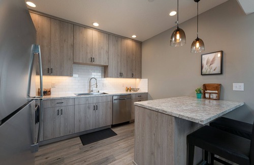 ● 2 bedrooms, full kitchen, LR, DR, private bath