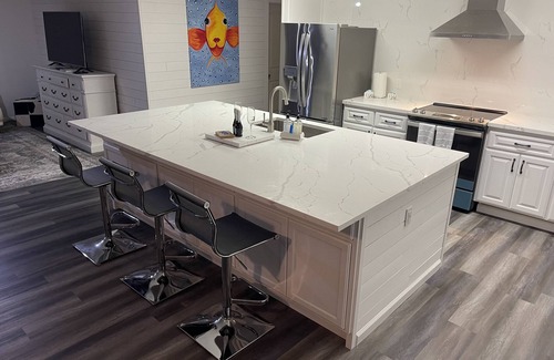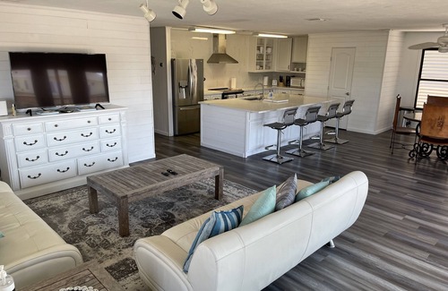 Welcome to your ideal waterfront getaway, perfectly suited for families, couples, and groups of up to 12 guests. This beautifully updated home features a fresh, modern design and offers 4 spacious bedrooms — including 2 large suites and 1 kid-friendly bunk room, and 1 room downstair by the water that can sleep 3 — along with 2.5 well-appointed bathrooms upstairs, and a cabin look full bathroom downstairs .