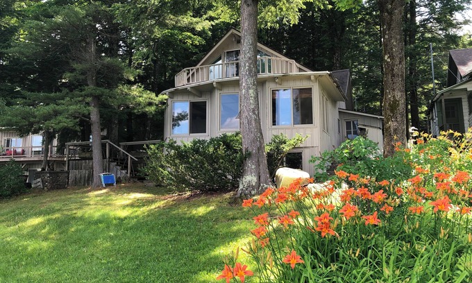 Welcome to this charming lake-front cabin at Galway Lake with steps to swimming in pristine water! This rustic, seasonal cabin features 3 cozy bedrooms - 2 with queen beds and 1 with a bunk bed. Family “camp” has been enjoyed for years, and is traditional in feel. With 2 bathrooms offering both a bathtub and shower, guests will feel right at home. The front room has a 180 degree view of the lake. Bald eagles and ducks can be seen as canoes and sailboats pass by. Enjoy the peaceful surroundings and take advantage of amenities like a washing machine, WiFi, and heating. Our place is equipped for both long or short stays to make your holiday one to remember.