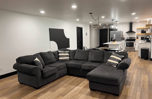 We have two separate living areas. Each have their own spacious couch and big screen TV. One room has beautiful views of the lake and the other has a modern electric fireplace that allows you to sit back and enjoy during your stay.