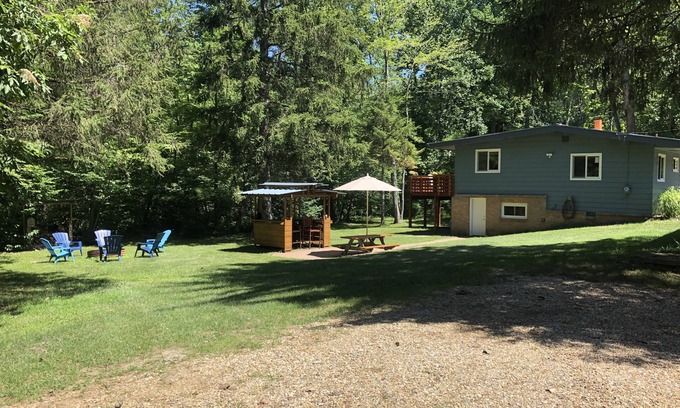 2 bedroom, 1. 1/2 bath cottage on a naturally beautiful 1.6 acre lot, private park like setting. Lake side of the red arrow Hwy. and very near Warren Dunes State Park. Plenty of outdoor area (6+ Acres), privacy and lots of parking. Gandy Cottage has Cottage charm and beautiful wooded views.