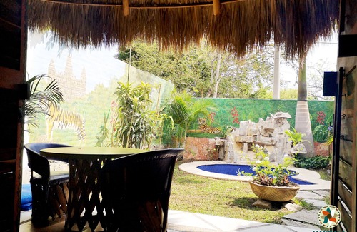We are an ecological boutique hotel that offers cabala rooms for couples exclusively, surrounded by nature and a Hindu-African style infrastructure with an atmosphere of tranquility harmonized by its artificial waterfalls that stand out in and out of private spaces. Each cabin is carefully decorated to transport you to an out of place experience, with views of the garden and private pools, living with your partner an unforgettable stay.