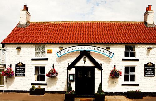 The Ganton Greyhound is a 16th Century coaching inn, located in an enviable position between Malton and Scarborough, therefore allowing guests easy access to the coastal resorts (Scarborough, Filey, Bridlington, Whitby) and inland treasures such as York, Pickering, Helmsley, Malton, Flamingo Land and the North Yorkshire Moors. Not only ideal for those wishing to explore all that North Yorkshire has to offer, we are also well suited to those walking the Wolds Way (approx 2 minutes walk away), and to golfers wishing to play on the challenging championship course of Ganton Golf Club (approx. 5 minutes walk). We have a bar on site, and guests can relax with a drink in the lounge, bar, cozy or comfortable and spacious beer garden (subject to weather conditions of course)! We also have a restaurant offering hearty home-cooked meals using local produce. Dogs are very welcome to stay at the Ganton Greyhound, in one of our allocated dog friendly rooms in the courtyard. They are also welcome in the bar and beer garden, and at breakfast and dinner we have specific dining areas for guests and their four-legged friends. All rooms have recently been redecorated and recarpeted, and have an private bathroom, tea/coffee making facilities, television and seating area. We offer free private parking on site too - all surrounded by beautiful North Yorkshire countryside!