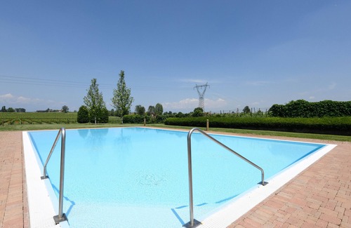 Quiet holiday flat in the green, in the first hinterland of southern Lake Garda, embedded in the beautiful wine landscape and with a large outdoor pool (open seasonally from mid-May to mid-September). The flat has a private garden with direct access to the pool area, a beautiful terrace with dining table and relaxing chairs and is very close to the well-known golf course Chervò Golf in Pozzolengo.