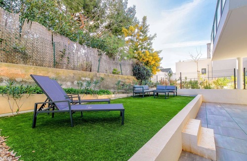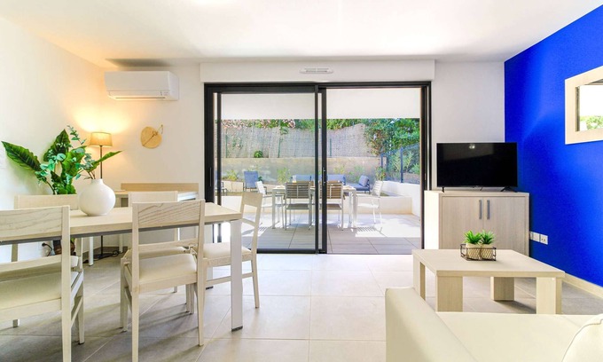 Just far enough from the buzz to feel peaceful, yet close enough to the sea to sneak in a swim before breakfast. This ground-floor apartment for 6 guests is everything a holiday should be: sunny outdoor space, bright interiors, and nothing standing between you and the art of doing absolutely nothing.