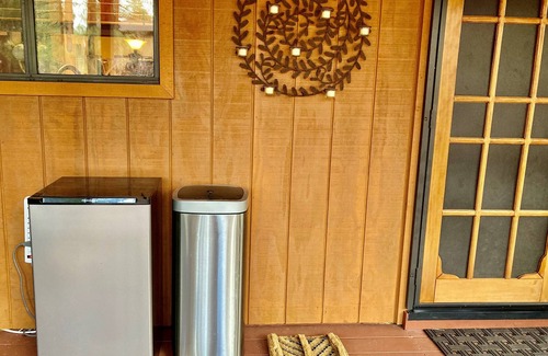 Our comfortable garden cabin is in Pinetop Lakes Country Club. A two bedroom with a King in the master and Queen in the Guest room. In addition, is a 8" mattress Futon in the living room and an additional pillowtop roll-a-way bed if needed. A well-lit living room features a TV with sound bar to enjoy in front of a cozy gas fireplace. All updated appliances in the kitchen complete with pots, pans, plates and glassware... everything but the groceries... We have both a Keurig and regular drip coffee maker. This cabin has a newer washer and dryer. Extras include board games, dvd player with an assortment of movies. A smart lock allows seamless entry.