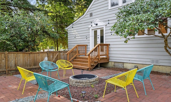 Perfect for large groups, this 6-bedroom, 3-bath property combines two homes into one spacious retreat. With multiple living areas, full kitchens, and plenty of bedrooms, everyone can spread out comfortably. Relax in the private yard, gather at the fire pit, or explore nearby restaurants, parks, and shops. An ideal choice for families, friends, or group trips.