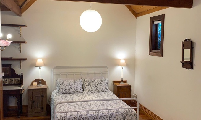 Timber self contained simple garden studio with kitchenette, queen size bed & basic outside bathroom hidden in a secluded private garden with its own private entrance in the Lower Blue Mountains of Glenbrook. 4 min drive to local cafes, Glenbrook National Park and Mountain bike trails. 12 minutes from Penrith, 10 minutes from the Nepean River, 1 hour drive from Sydney, 50 min drive to Leura, & Three sisters in Katoomba.