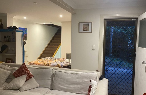 This garden flat requires going down thirty steps to the tranquil setting below the main house.