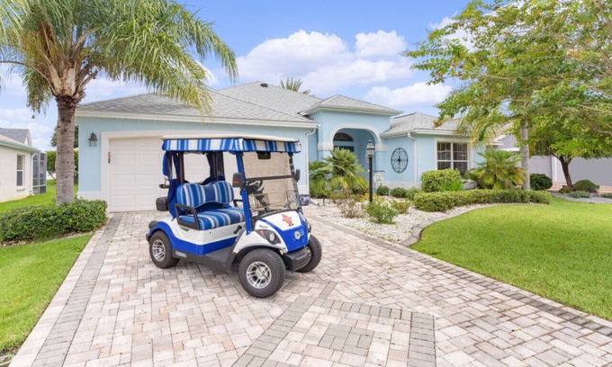 With a Villages Temporary Resident ID (available for a $50 fee paid directly to The Villages), you'll gain access to 40+ executive golf courses, offering a variety of challenges for all skill levels. These courses are included in the amenities accessible during your stay, making it easy to enjoy a round of golf in the beautiful Florida sunshine. Each town square features LIVE MUSIC EVERY DAY, along with numerous events and festivals, creating a lively and engaging atmosphere.