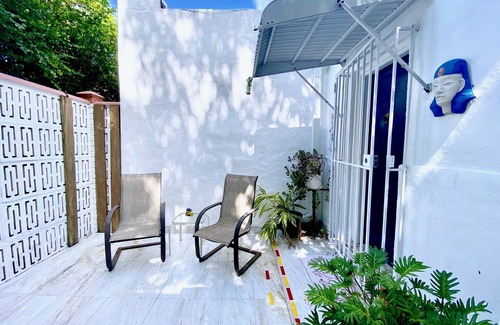 It’s a beautiful one bedroom with a separate kitchen and a separate living room, more like a little cottage, has one bathroom, a private entrance and a private little patio. It’s perfect for lone travelers or couples.