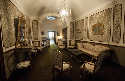 Since the lounge is large, it is divided into two adjacent lounges both furnished in the 19th century style. Each living room has: floor carpeting, a large sofa with chairs, a coffee table and a console with mirror.