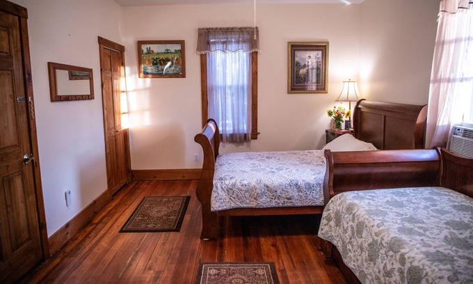 Garnet room at The Farmhouse Bed & Breakfast at Maple Bottom Farm -pet friendly has 1 Bedroom , 1 Bathroom, and max occupancy of 3 people. The minimum rental for this property is 1 nights, but this can change depending on the season you plan on staying. Previous guests have given good rated it, and VRBO labeled it a top-rated Bed & Breakfast because of the excellent services rendered by the owner or manager of this Bed & Breakfast, and has consistently provided great experiences for their guests. Most families or guests that use it recommend it to their friends and some of them are repeat guests. Bed & Breakfast has a friendly neighborhood, and the Dickerson Run has interesting places to visit. If you want to learn more about the Bed & Breakfast in Dickerson Run, such as places to visit and things to do nearby, you can check below to learn more.