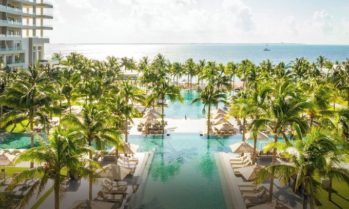 Best-rates for the Playa Mujeres resort starts from $614 per night with includes Accessibility, Spa, Restaurant, Bar, Guest Services, Hot Tub, Internet, Wellness Facilities, Wheelchair Accessible, Kitchen, Laundry, Sports/Activities, Toiletries, Child Friendly, Air Conditioner, Pool, Designated Smoking Area, View, Ocean View, Balcony/Terrace, Bedding/Linens, Parking with all other amenities. Perfect for Weddings is committed to ensuring every guest experiences a comfortable and extraordinary stay, whether planning a romantic getaway, a honeymoon, a pet-friendly stay, or celebrating with the entire wedding party.