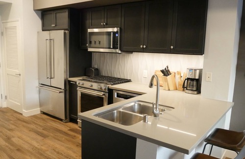 30 day minimum rental. Newly renovated, stylish, sophisticated 1 bedroom condominium in the heart of everything. Overlooks Horton Grand Hotel and Theatre, 3 blocks to Petco park, 2 blocks to San Diego Convention Center, right in the center of the Gaslamp Quarter surrounded by great bars and restaurants. Located on the 4th floor of the Gaslamp City Square complex with pool and spa, fitness center and barbecue area secluded in our building's private central courtyard. Kitchen just updated with a full suite of Top-of-the-Line KitchenAid stainless steel appliances (Stove, Microwave, Dishwasher, Counter-depth French Door Refrigerator with filtered water and ice maker). The entire building is Access Controlled (fob required for all entry doors and elevators) for extra security. Designated parking space included. Pet friendly, with approval (building allows up to two "35 lb. pets", just not on the pool deck or central courtyard please). Trolley line is 2 blocks away with connection to Amtrak and Coaster. Old Town Trolley stop right across the street.