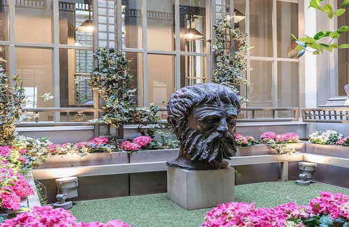 The apartment is just a few metres from the Champ de Mars park, so despite its exceptionally central location, it’s a quiet, peaceful home. The Ecole Militaire metro stop is just a five-minute walk away, so you can zip around the city seeing the sights, then return to this tranquil haven to relax and unwind. The flowered patio is a wonderful spot for a morning coffee and a moment of meditation, while the ornamental pond inside makes for a lovely backdrop for a yoga session.