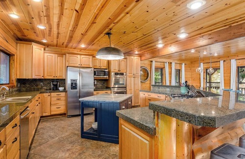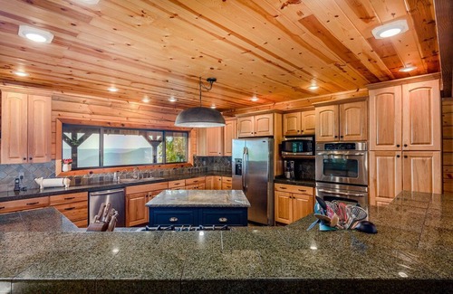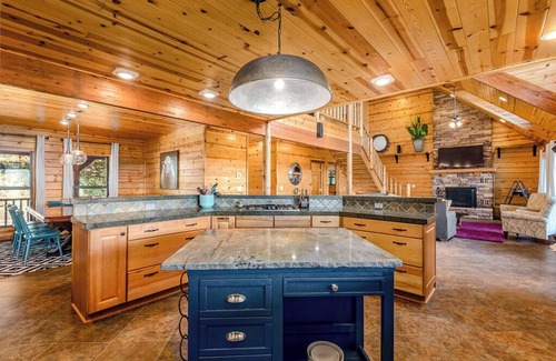 Gather your loved ones and take the ultimate escape to this private cabin. Located 6.5 miles south of Jasper, Arkansas. Gaston's View is a 3600 sq ft cabin that will sleep up to 17 people is located on 13 private acres. It boast over 1000 sq ft of wrap-around covered decks. The main floor has an open floor plan where the spacious kitchen and cozy living room offer breathtaking views of the Arkansas Grand Canyon and Vendor Valley. It is the perfect setting for families and friends! This 5 bedroom, 3 bath cabin offers 3 levels. You enter into the living room, kitchen and dining area where you can enjoy the views of the Arkansas Grand Canyon and Vendor Valley. The open floor plan is airy and light. There is a one bedroom on this floor which feature views of nature through the windows. This level has one full bath with a tile walk in shower. The living room is perfect for lounging in front of the wood burning fireplace, playing games or enjoying time with your loved ones. The spacious kitchen is fully stocked with everything you need to show off your kitchen skills. Bar-stools line the marble tiled bar top and is a perfect space to sit and visit while your meal is prepared. The kitchen has a gas cook-top, a double oven, Side by side fridge and freezer & dishwasher. We offer a Keurig with pods and there is also a drip coffee maker. There are 2 crock pots, 2 sets of pots and pans, a 17 pieces of serving dishes and dishes & cutlery for your group. You can access the covered wrap around deck through the double doors off the living room. There is plenty of outdoor seating and you just may never want to come back in. The view of the valley below and the mountains beyond truly have to be experience first hand. Photo's don't do it justice!