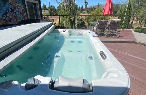Yes, this Redwood Valley cottage has a swimming pool. Check the Facility Overview section for details about the pool and other available facilities.